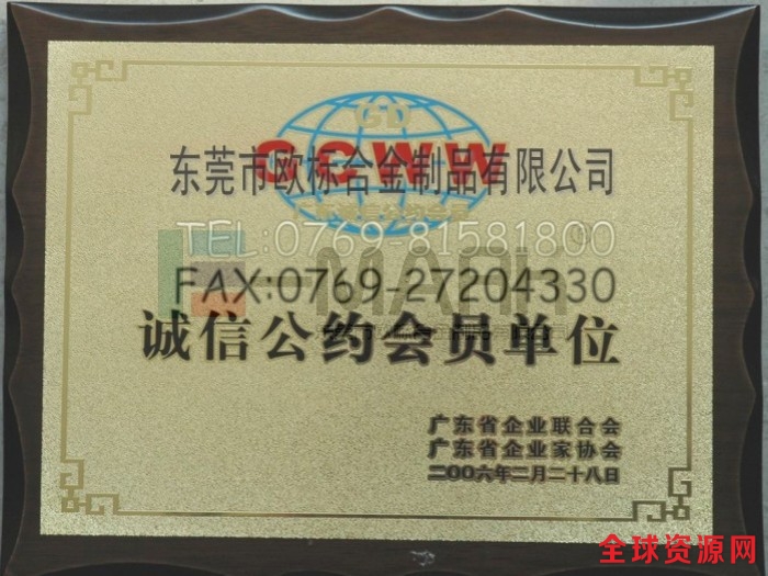 东莞市欧标合金制品有限公司企业荣誉: