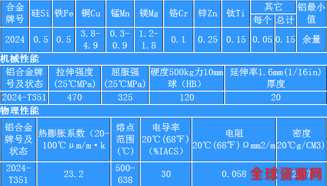 2024合金牌号于1954年由美国注册。这是一种高强度硬铝